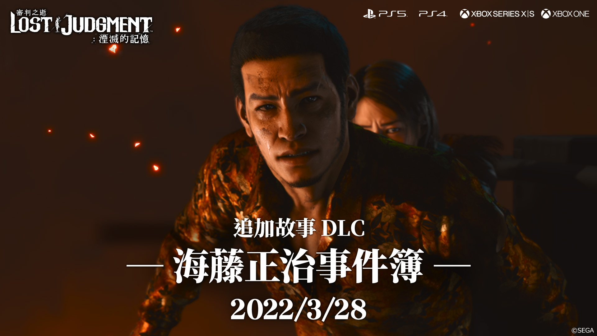 世雅股份有限公司宣布,關於預計於2022年3月28日(一)推出的『審判之逝:湮滅的記憶』追加故事DLC「海藤正治事件簿」,本次將介紹可享受遊玩與八神風格迥異的海藤戰鬥風格。