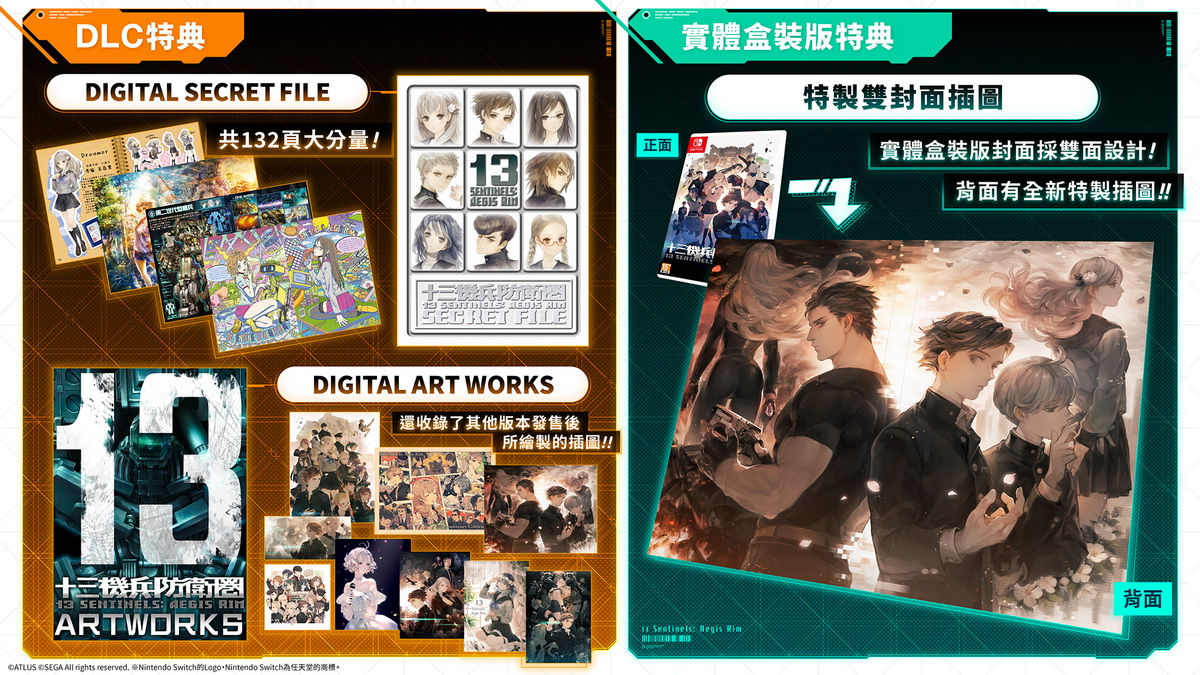 PlayStation® 4下載版豪華版特典「DIGITAL SECRET FILE」&先行購入特典「DIGITAL ART WORKS」全都包含在內!實體盒裝版為「特製雙封面插圖」規格!