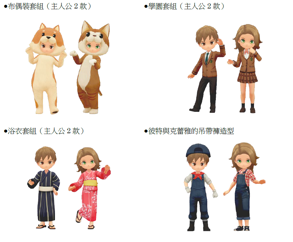 ※『歡樂服裝套組』為『牧場物語 橄欖鎮與希望的大地 SPECIAL』的新增內容。只有『歡樂服裝套組』是無法遊玩遊戲的,因此需要另外購買『牧場物語 橄欖鎮與希望的大地 SPECIAL』。購買時請多加留意。