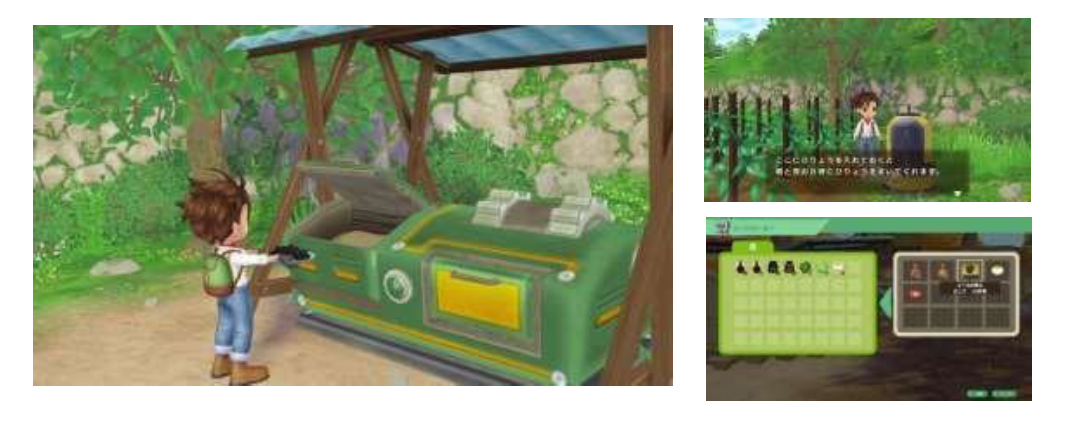 ※從自家前藍色箱子中收取「從鎮上寄來的東西」後,主人公的服裝便會移至衣櫃裡。