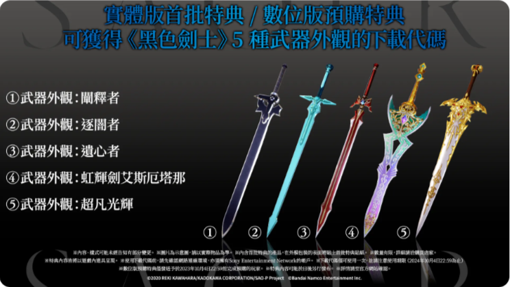 版權標示:©2020 REKI KAWAHARA/KADOKAWA CORPORATION/SAO-P Project ©Bandai Namco Entertainment Inc.