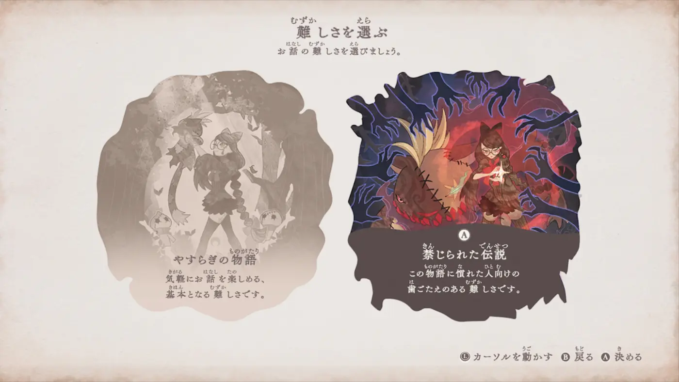 從故事開始時便可以選擇高難度模式「禁忌傳說」。請留意無法在途中更改難度。