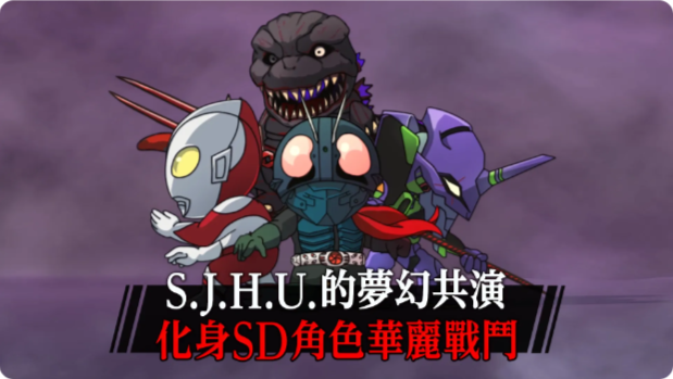■與YOKO TAKAHASHI的全新歌曲〈罪與罰 不祈禱者們〉合作的宣傳影片現已公開 「新.日本英雄宇宙」(S.J.H.U.)將作為付費追加DLC集結於此,「初號機」、「超人力霸王」及「哥吉拉」化身SD角色華麗戰鬥。