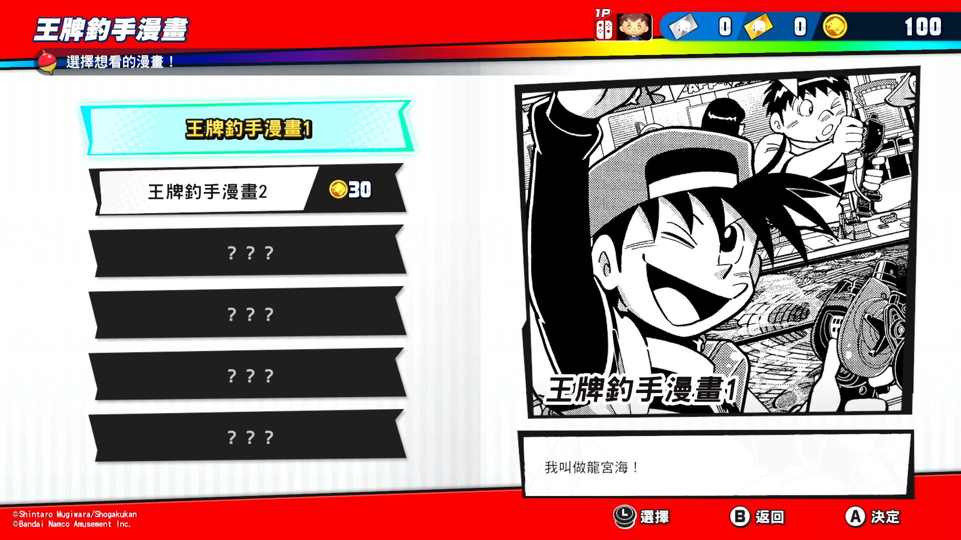玩家在遊戲中使用硬幣後,將可閱讀曾於漫畫雜誌《COROCORO》中發表的《王牌釣手》漫畫「前篇」及「後篇」。在漫畫版《王牌釣手》中,主角龍宮海與膨脹太郎將會釣到哪種龐大的魚類呢?