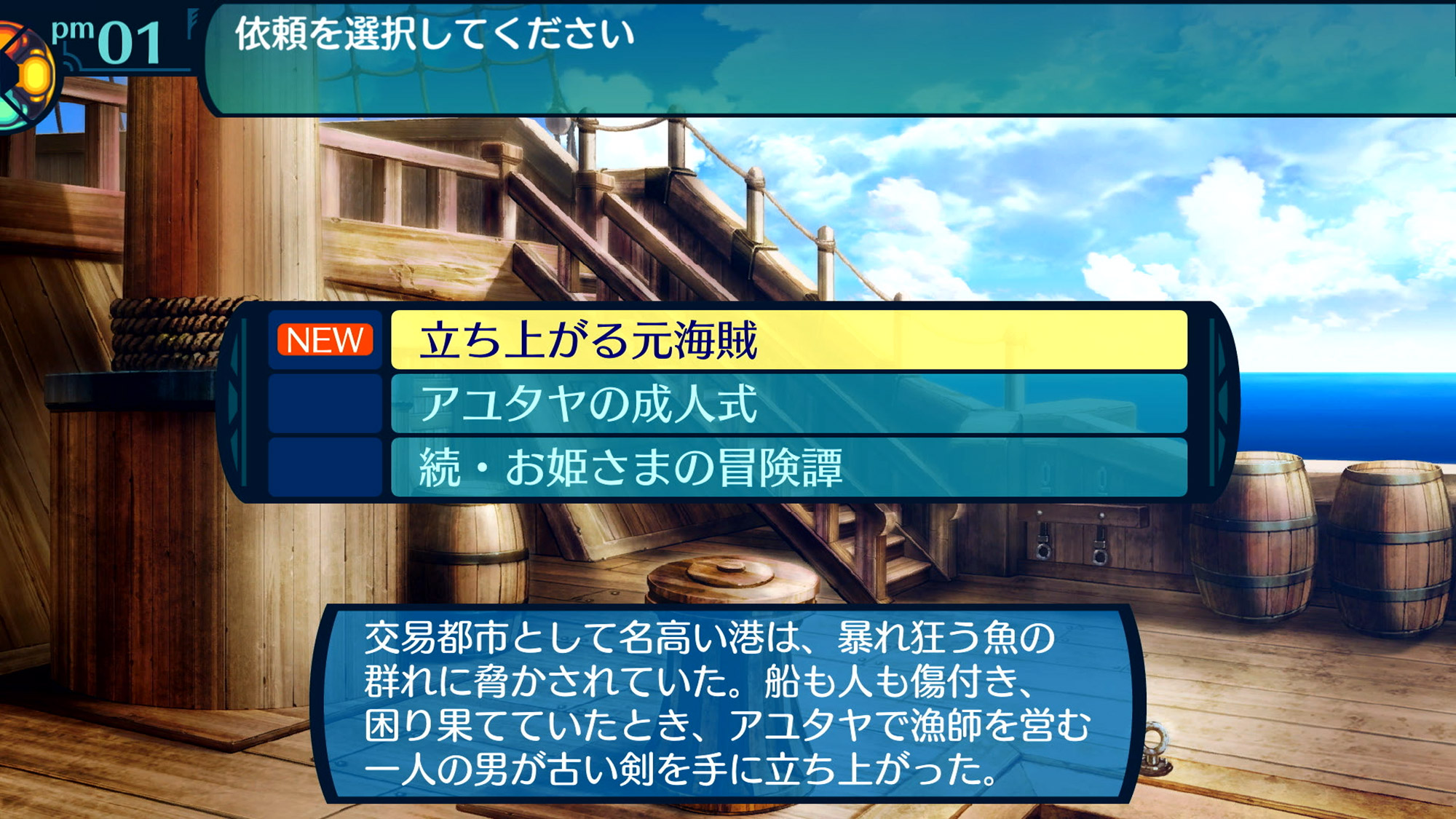 可以進行航海或是協力遊玩「大航海任務」的港口。在探索迷宮 的餘暇不妨來此造訪吧。 由於航海圖鑑的管理也是在此進行,因此在海上獲得了貿易品 或船隻裝備後請到這裡報告。