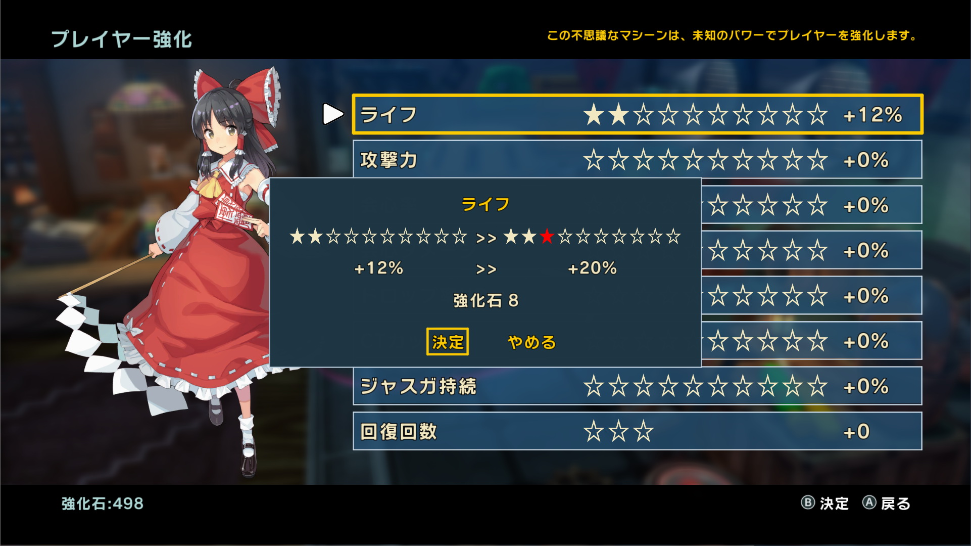 使用任務報酬獲得的強化石提升玩家的數值。