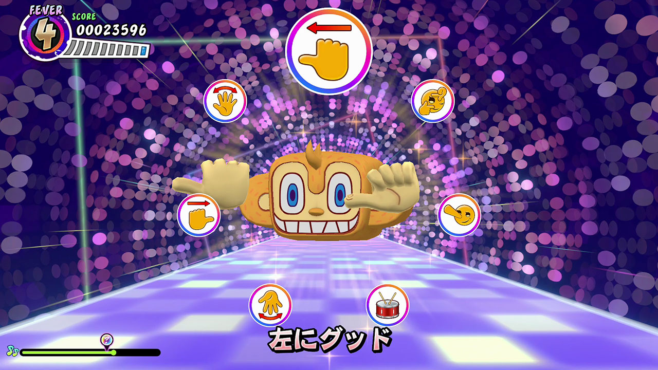 只要碰觸在節奏遊戲中出現的「?」節奏球,就會出現輪盤。玩家必須依照輪盤指到的項目進行 表演。