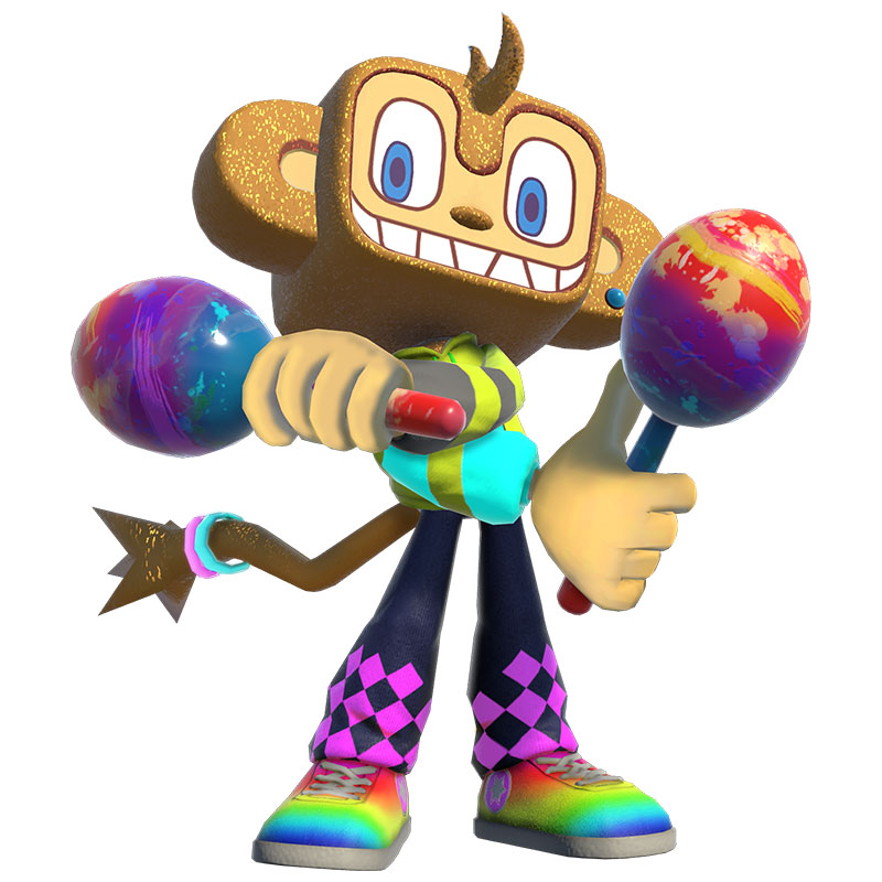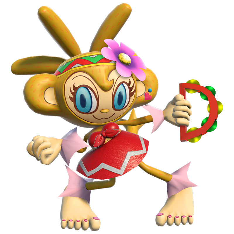 立志用沙鈴成為世界第一而踏上旅途的小猴子。環遊世界後精通了各種來自世界各地的音樂。歷 經一番成長的他再次出現在眾人面前!
