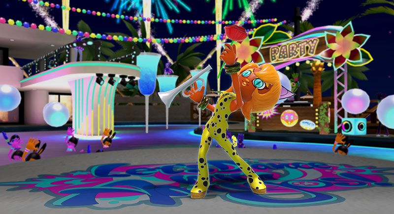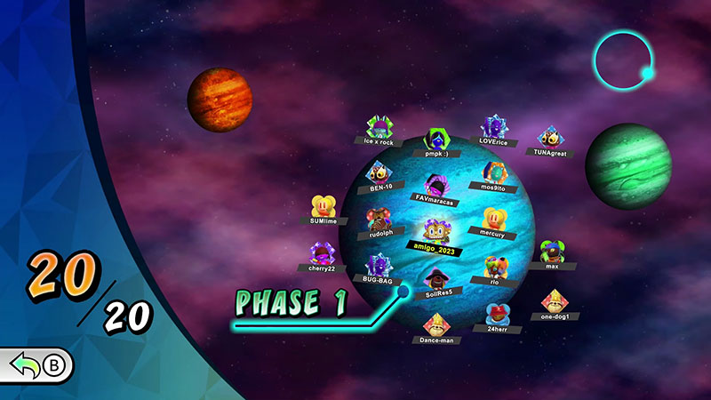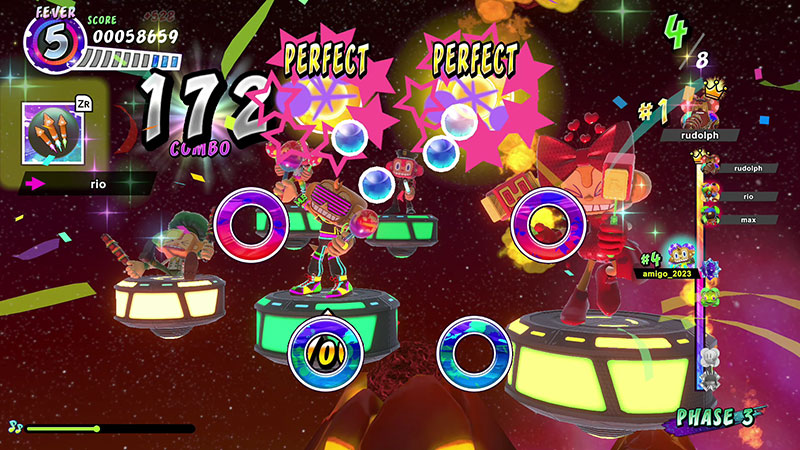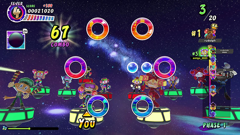 ■「線上節奏遊戲」 除了世界派對之外,本作也內建了可4人同時連線遊玩的「線上節奏遊戲」模式。即便身處不同 地方,也能和好友一起歡樂開趴!