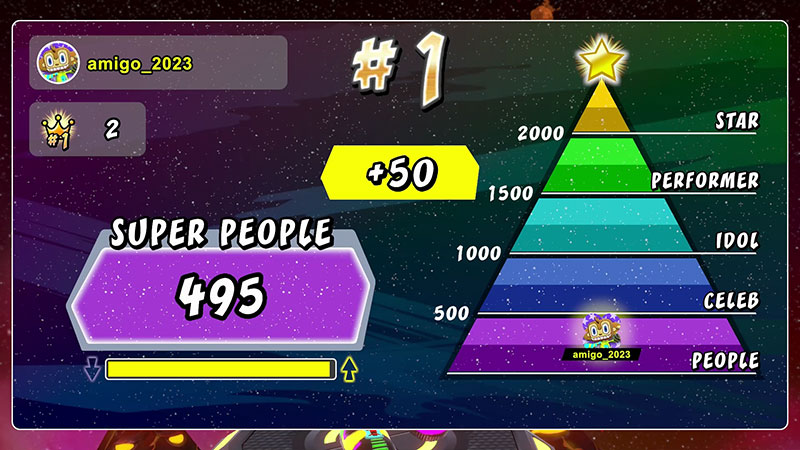 此模式最多進行3首歌曲,每首歌曲結束後會決定晉級至下一首歌的人。努力維持不被淘汰,朝 冠軍表演者的目標邁進吧!