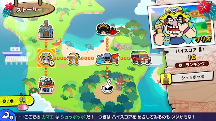 這次瓦利歐公司一行人造訪的是名為「貝利尤易斯島」的南國度假勝地。那裡有200種以上需要活用全身上下來挑戰的小遊戲在等著他們。