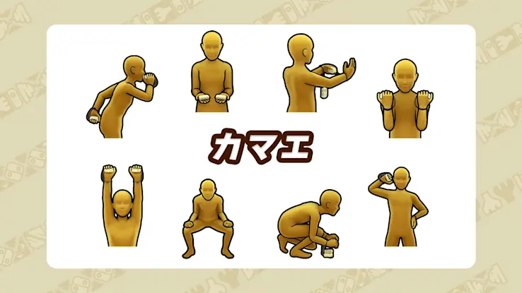 小遊戲的重點在於被稱為架勢的各種姿勢。以指定的架勢做好預備動作,在電光石火的瞬間挑戰題目吧!