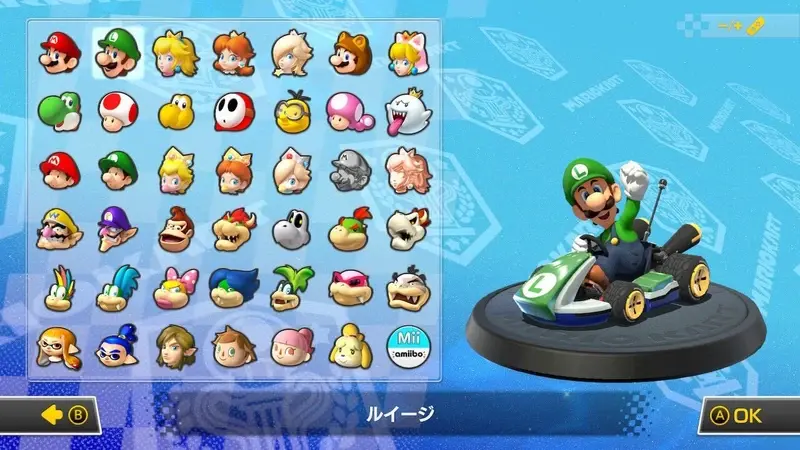 在《瑪利歐賽車8 豪華版》中,有系列作中最多的42名角色登場(購買《瑪利歐賽車8 豪華版 新增賽道通行證》者,或「Nintendo Switch Online+擴充包」的加入者,則有包含新角色「凱瑟琳」在內的43名角色登場),但每個角色的最高速度等能力值各不相同。