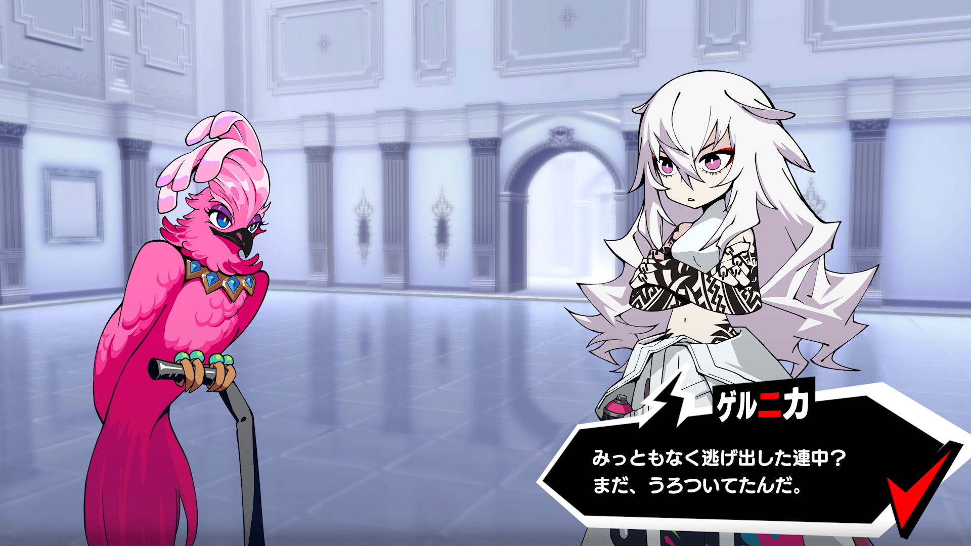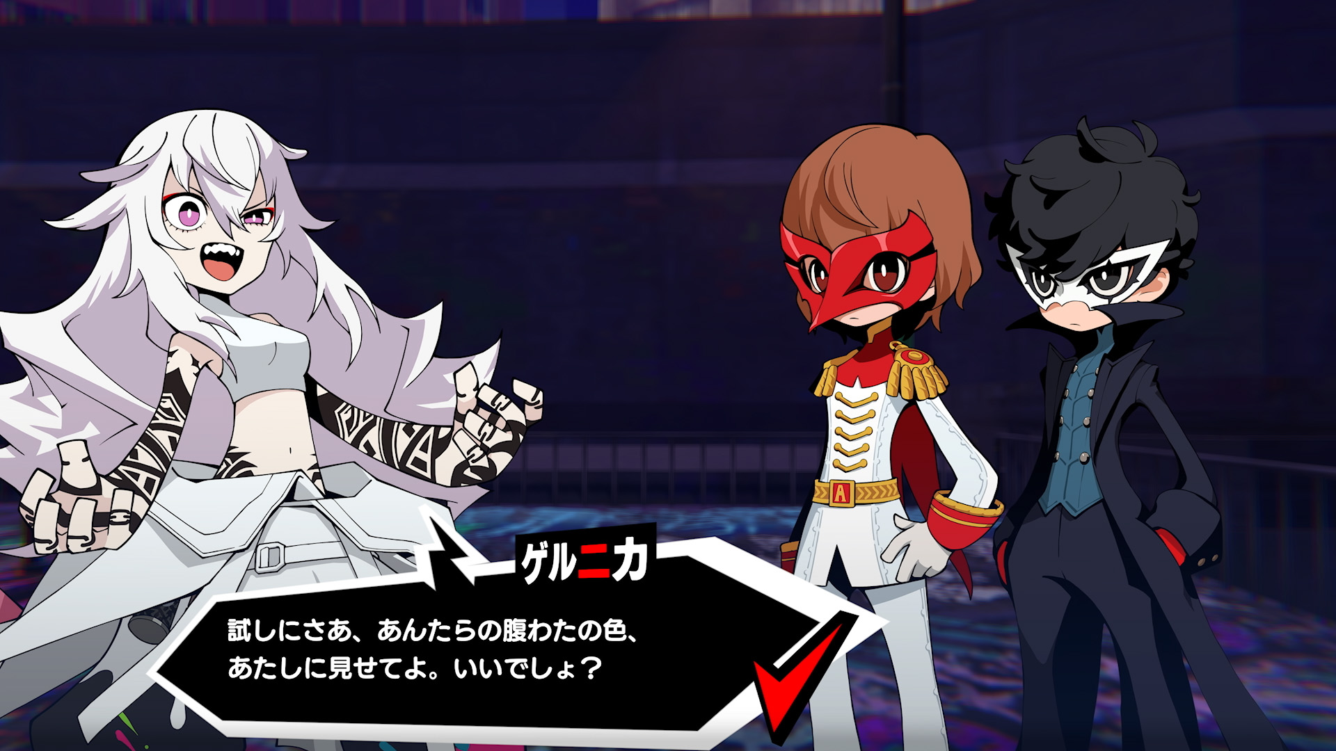 3人輕鬆地擊退了敵人,但也目擊了穿著布偶裝的居民遭到襲擊而四處逃竄的景象。 而迫害這些居民的,竟是轟動現實世界的街頭藝術家——格爾妮卡。