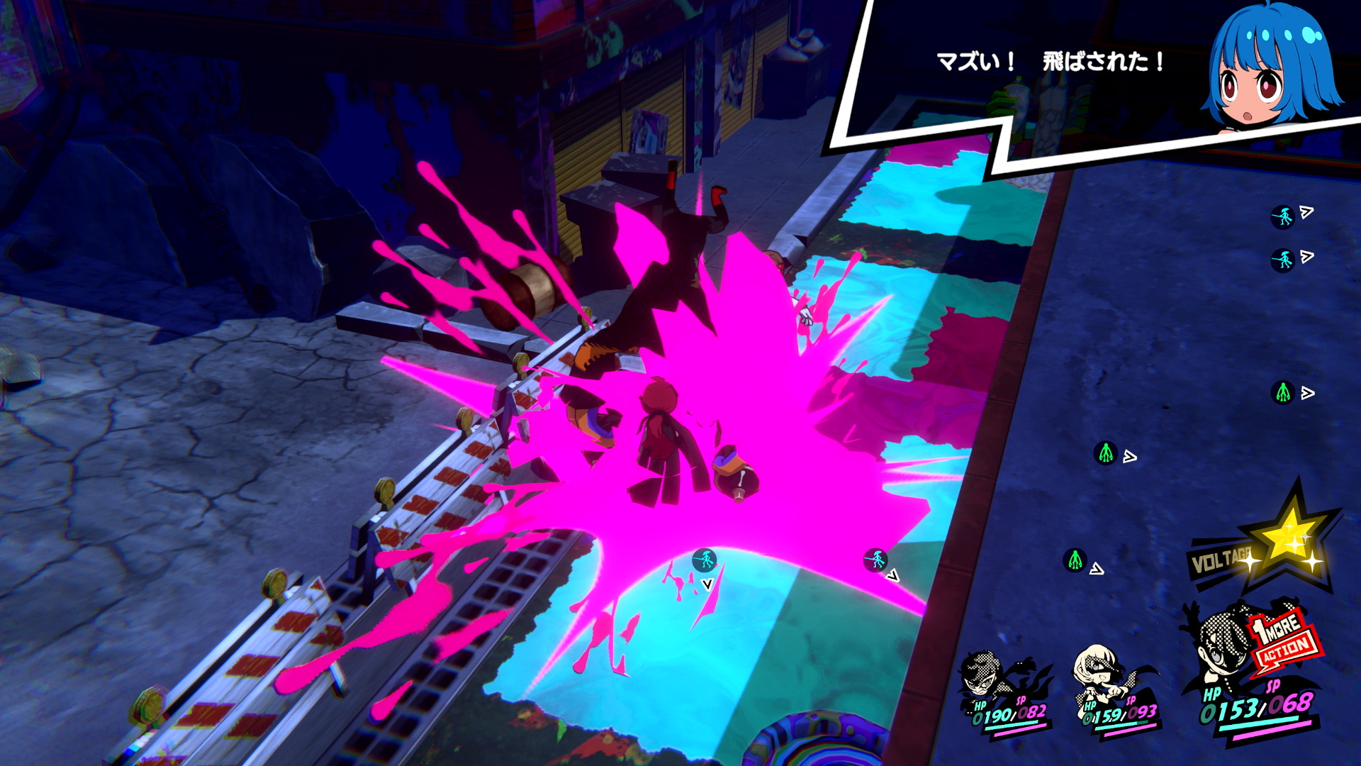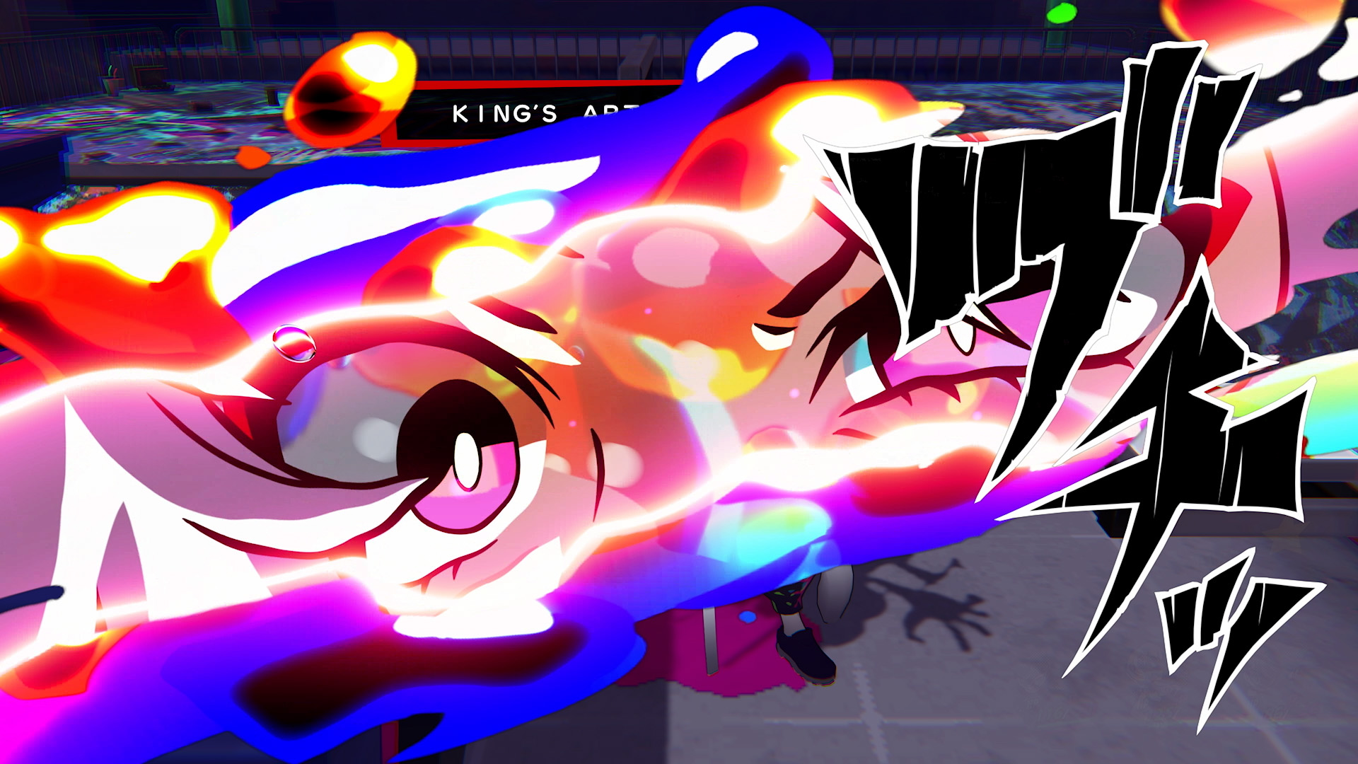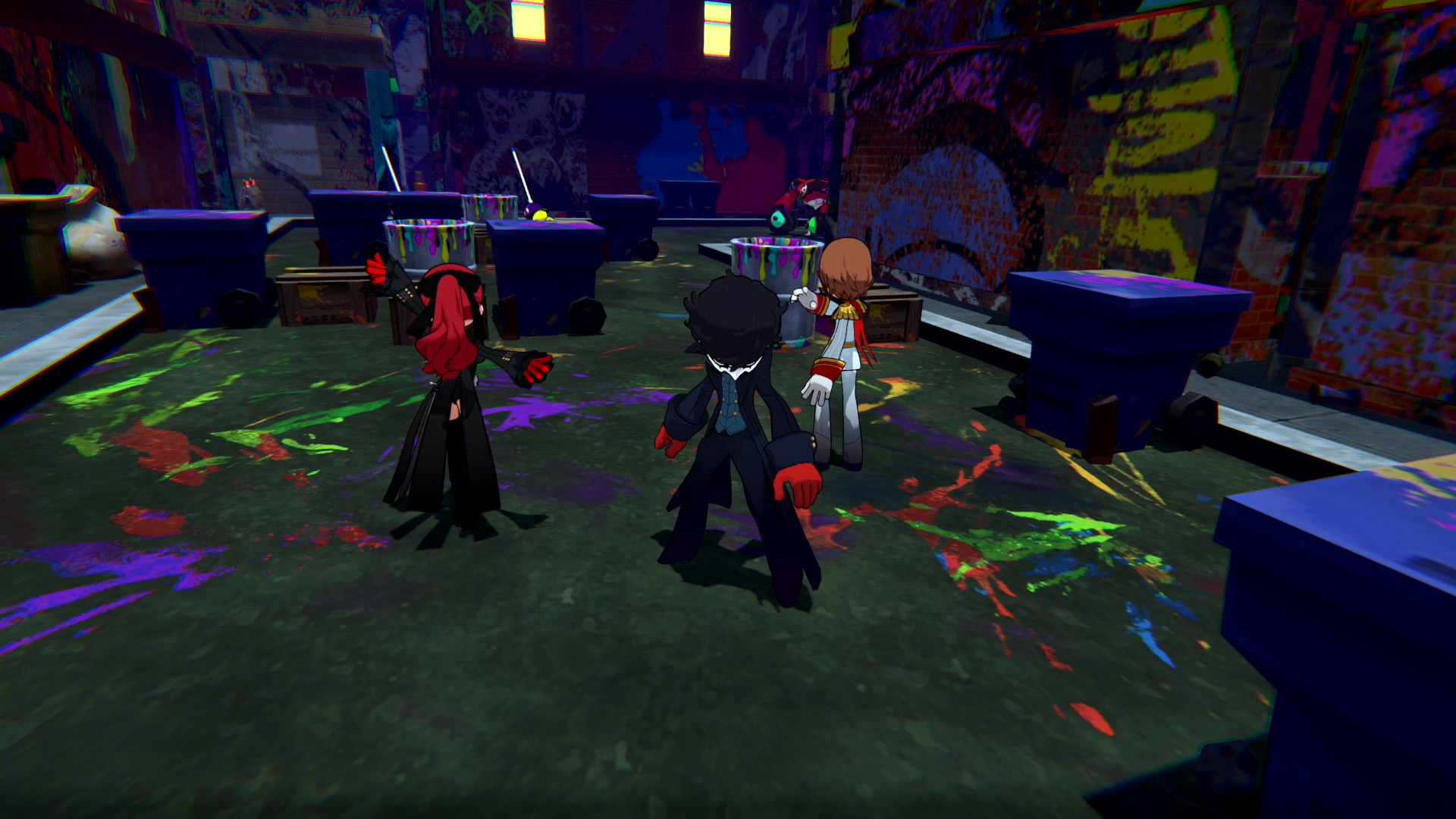 接著,牆上的塗鴉開始發光,含JOKER在內的3人都被吸進了塗鴉裡。 他們睜開眼睛後,發現自己正身處畫滿塗鴉的暗巷裡,被一群持有顏料槍的不良份子包圍。