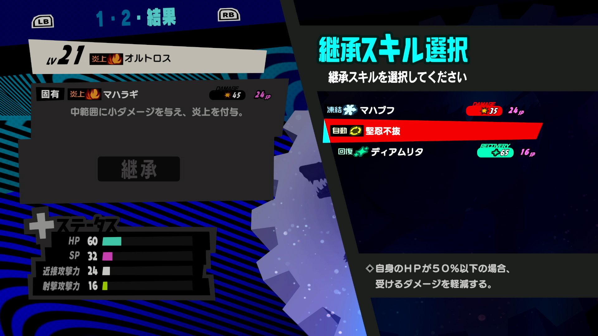 人格面具所擁有的技能除了有像「迪亞」和「吉歐」這種需消耗SP發動的技能外,還有只要裝備就會 自動發動的輔助技能。盡情摸索,找出角色與人格面具的理想搭配吧!