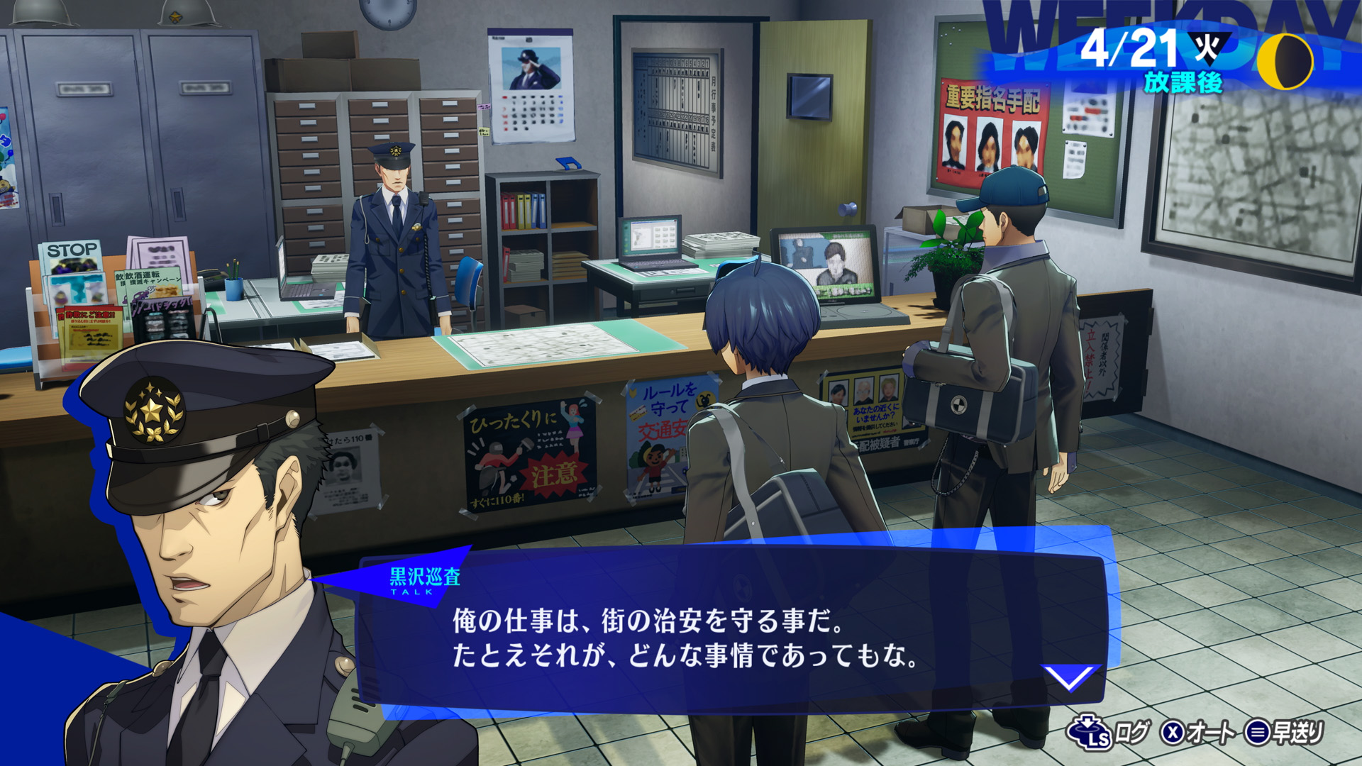 在波羅尼亞購物中心的派出所可購買主人公一行人的武器與防具。 在此執勤的黑澤警員知曉影時間與S.E.E.S.的活動內容,會妥善處理主人公一行人的武器與防具。