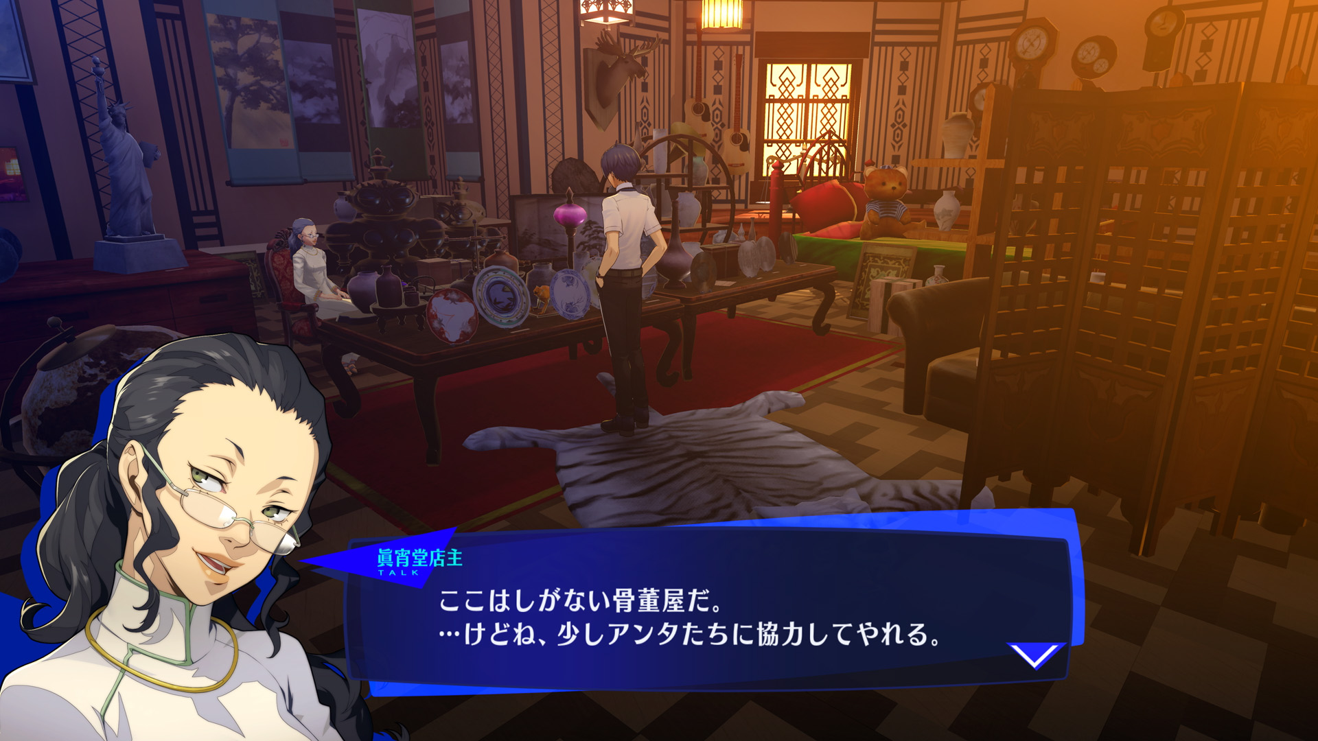 在波羅尼亞購物中心的骨董店,店主人是桐条集團的前研究員。 可使用從塔耳塔羅斯或受孕人格面具所獲得的道具製作特別的武器,或是以物易物兌換貴重道具。
