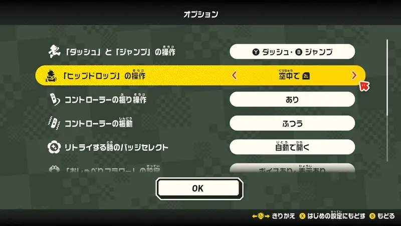 除此之外,在選項中也可變更「衝刺」與「跳躍」的操作、「臀部撞地」的操作、以及重試時的徽章選擇等設定,可以依照自己偏好的設定進行遊戲。