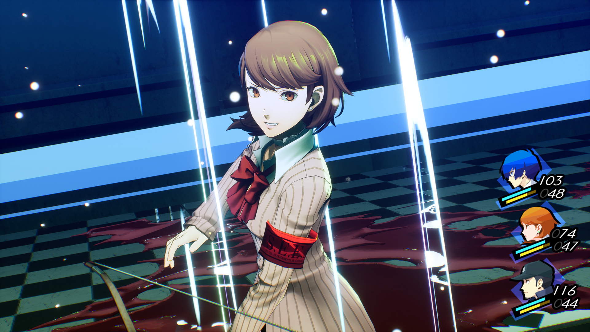 攻擊敵人弱點讓敵人倒地,就會發生可以繼續攻擊的「1MORE」。而當場上所有敵人都倒地時,即可發動總攻擊。《女神異聞錄》系列特色的指令式戰鬥在本作中也變得更加爽快。