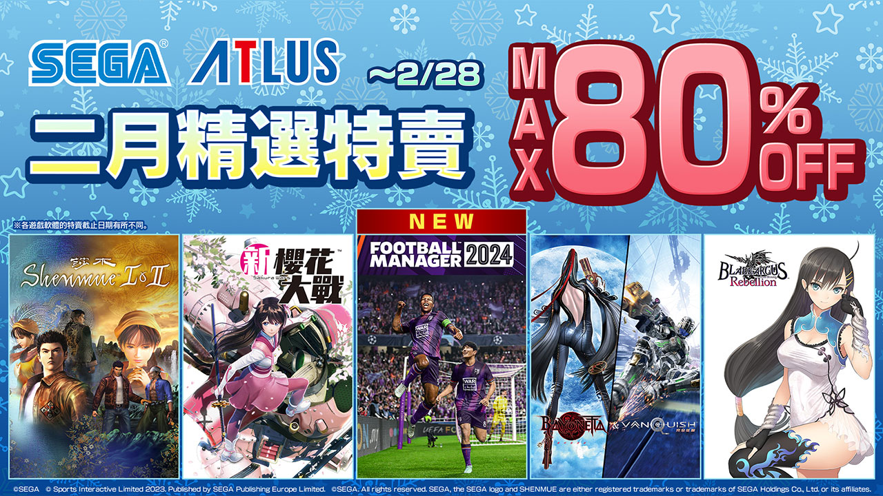 SEGA 二月精選特賣 數位下載版遊戲特賣活動專頁