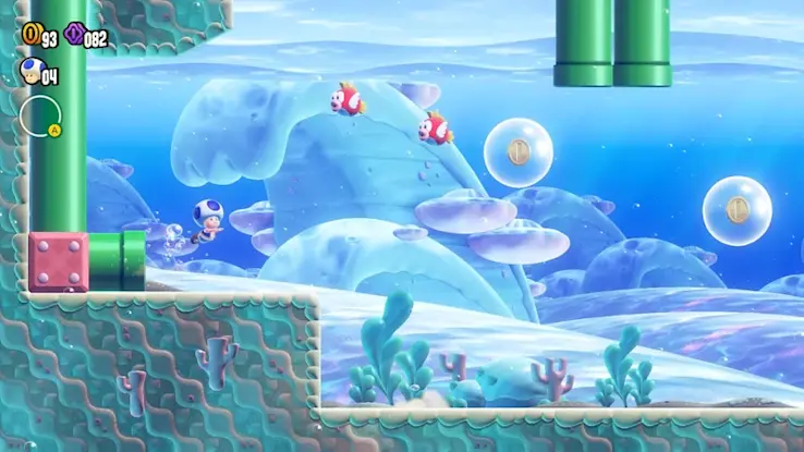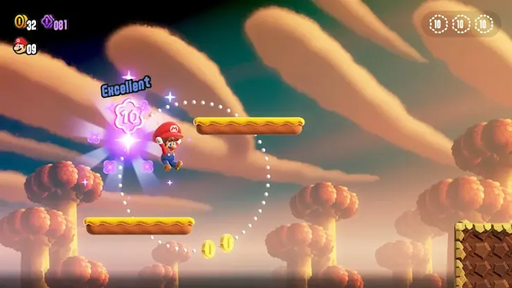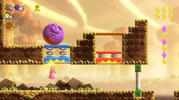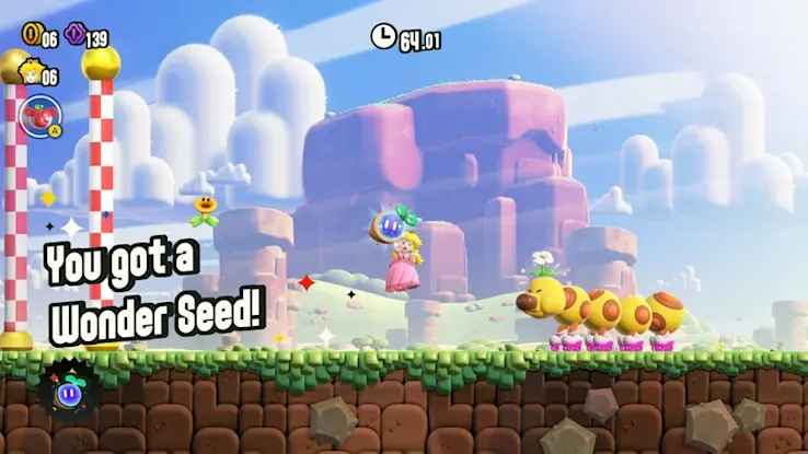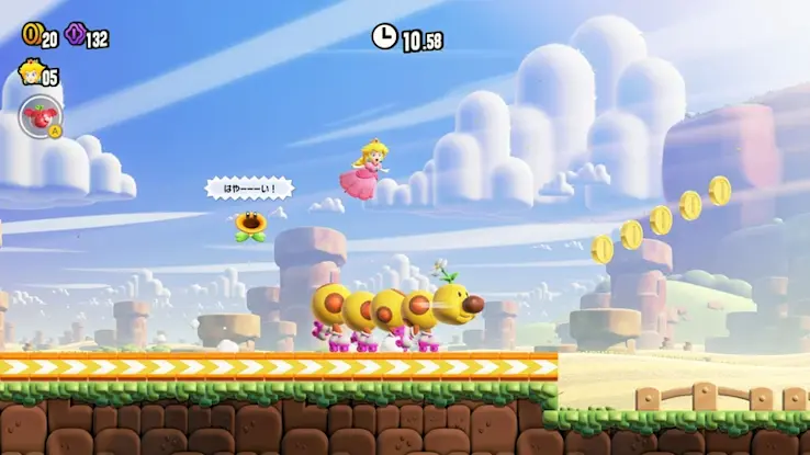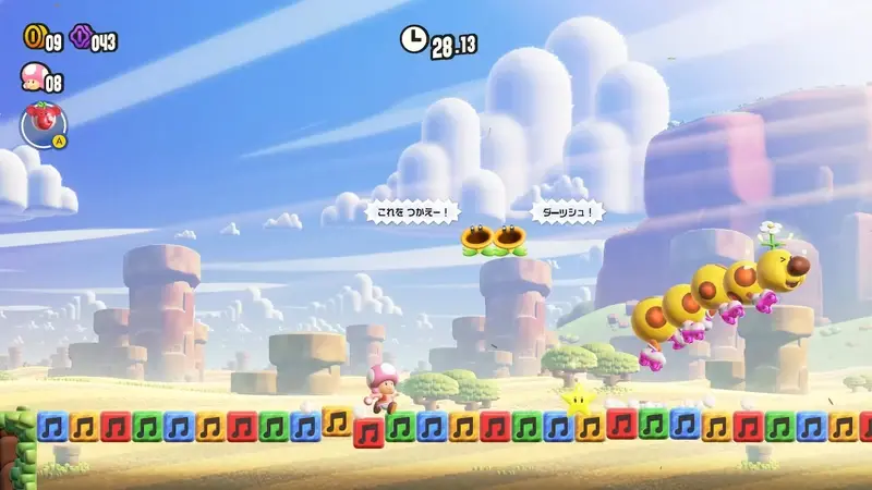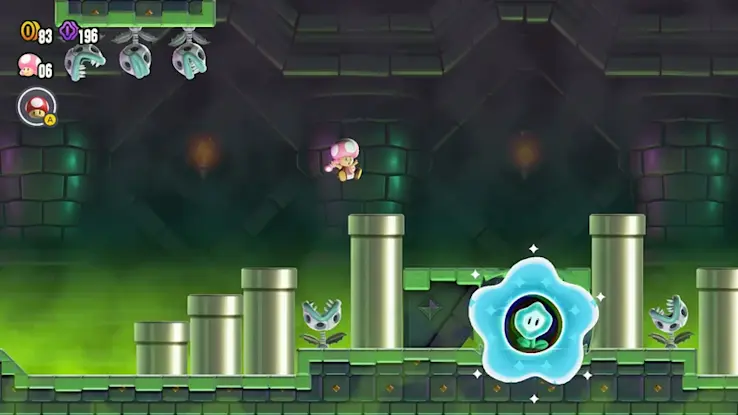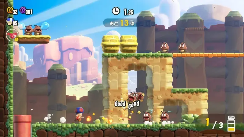 碰觸在關卡裡綻放的驚奇花,就會讓水管動起來、出現大量敵人,或是變身成別種樣貌……每個關卡都會產生不同的巨大變化。