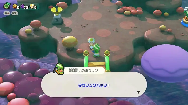 有尋找的目標時,探測徽章就是非常好用的道具。在World 5的「菌菌採掘場」可以立刻獲得探測徽章喔。