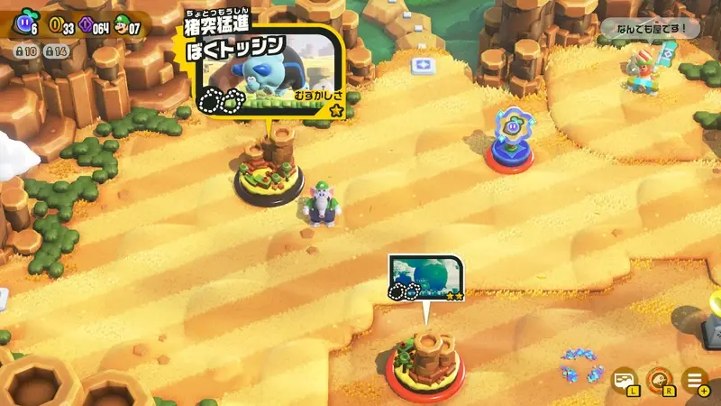 至此介紹過的各種關卡總計超過120關。世界地圖上也設有可自由選擇關卡的區域,因此請參考表示難度的★數,選擇喜歡的關卡來遊玩吧。