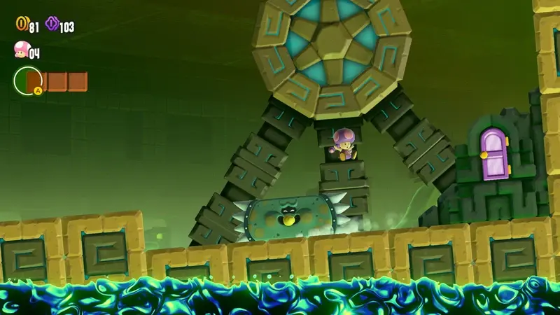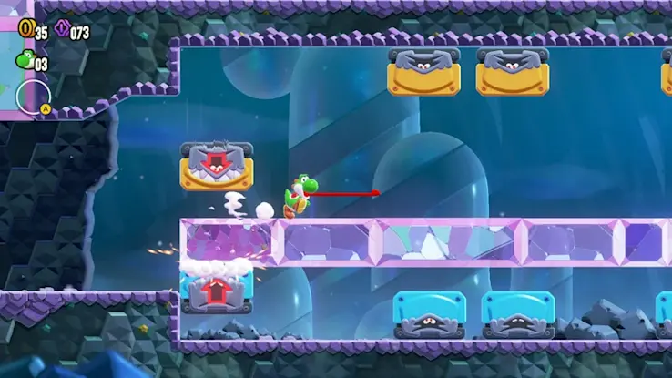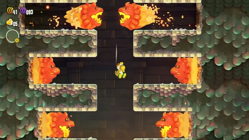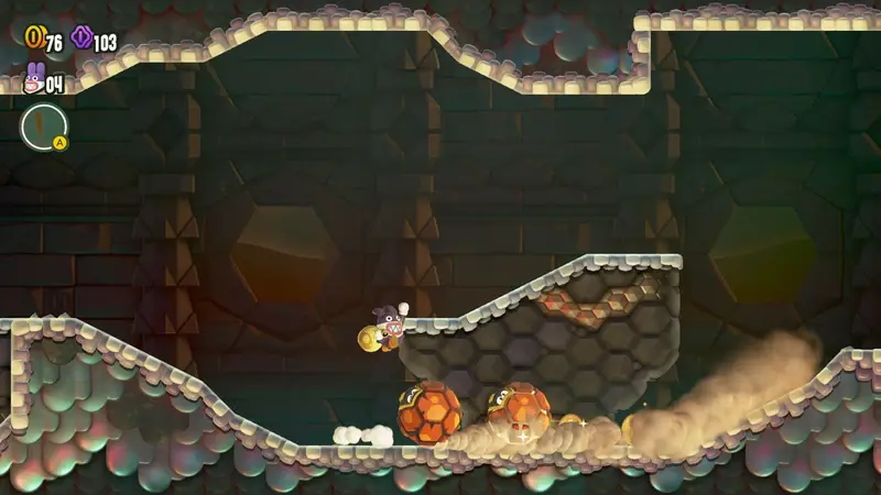攻略的要點在於踩踏彈滾波鈴的左側,一邊小幅度跳躍一邊前進。此為5顆★難度的高難度關卡,第一次遊玩的人不妨多利用平台,並把握地形與彈滾波鈴的動線之後再開始行動。
