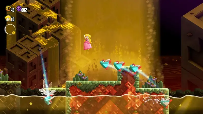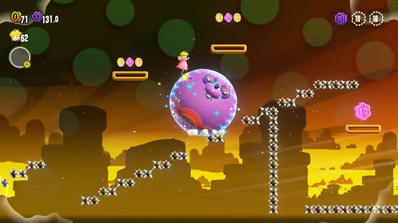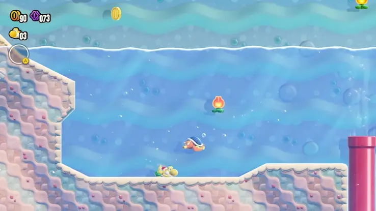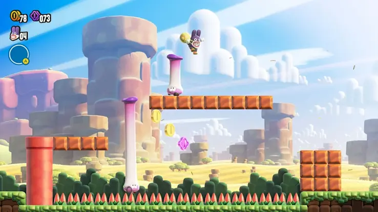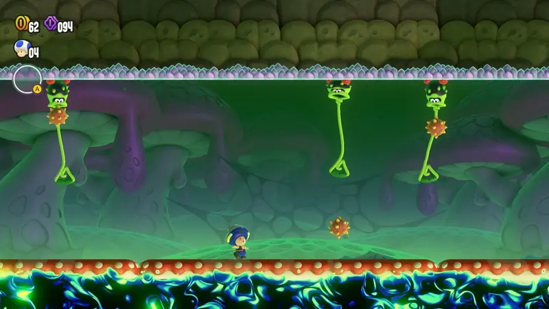 於特殊世界登場的關卡「水管岩平原SP 彈滾波鈴橫越尖刺」中觸碰驚奇花之,之後請繼續騎乘彈滾波鈴,以獲得驚奇種子為目標遊玩吧。