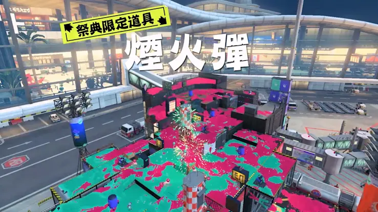 接著,從下次的祭典開始會提供新的限定道具「煙火彈」,投擲出去將發射墨汁煙火,能夠把周圍塗上顏色。盡情發射煙火,將祭典的夜空變得色彩繽紛吧。