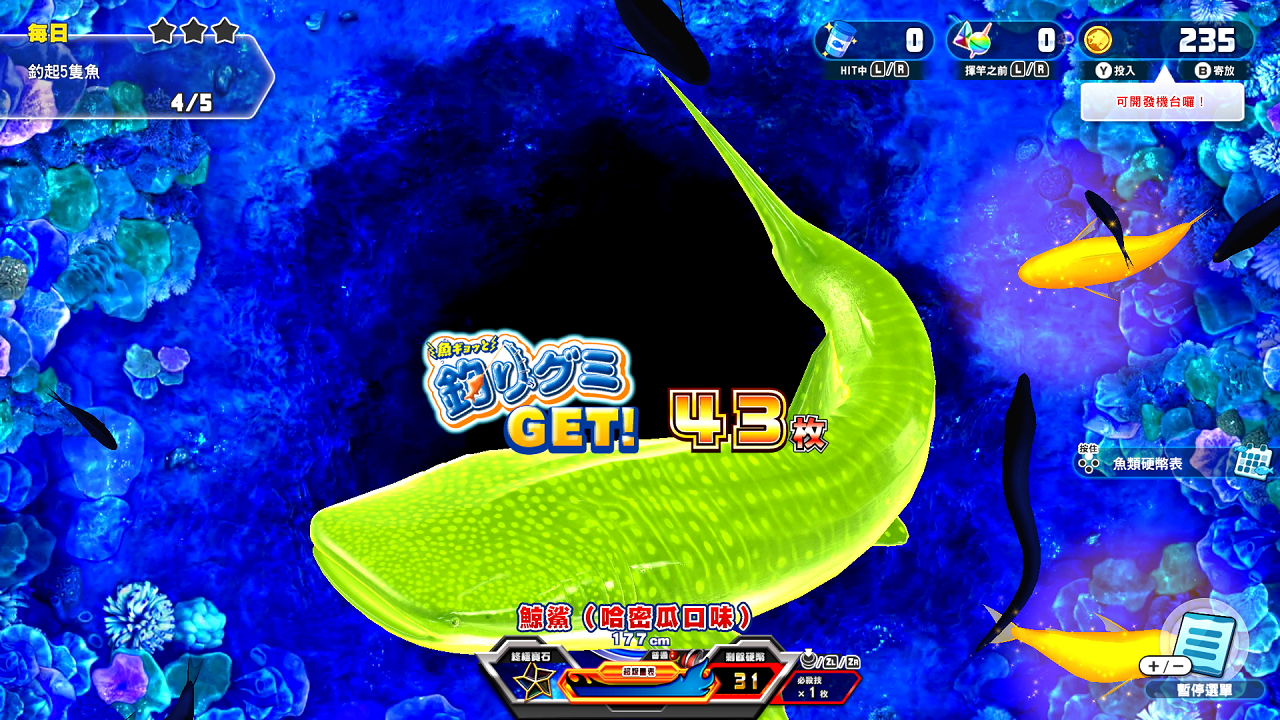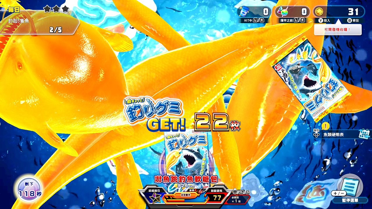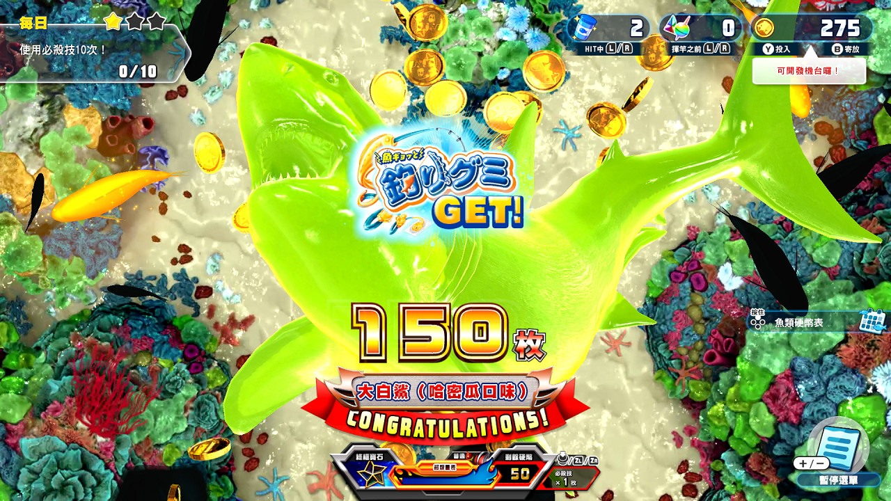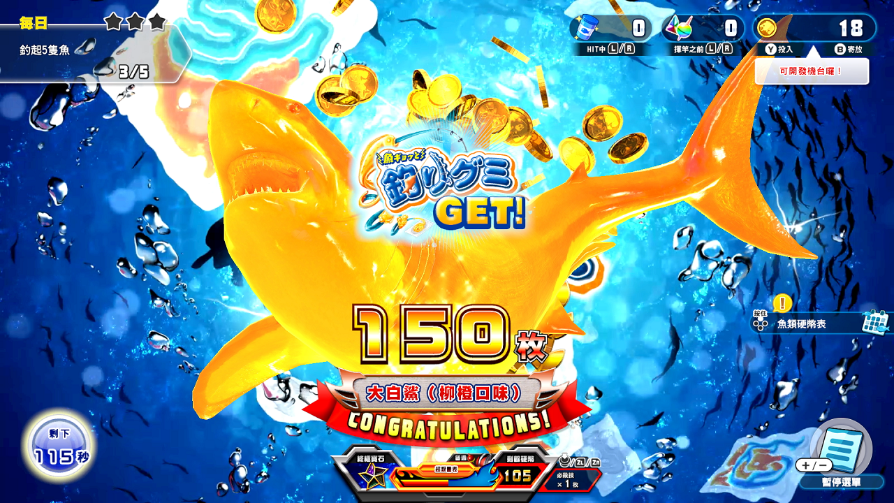 只要推進硬幣模式「王牌釣手+」的合作機台開發,就可以遊玩「嚇魚跳釣魚軟糖關卡」。