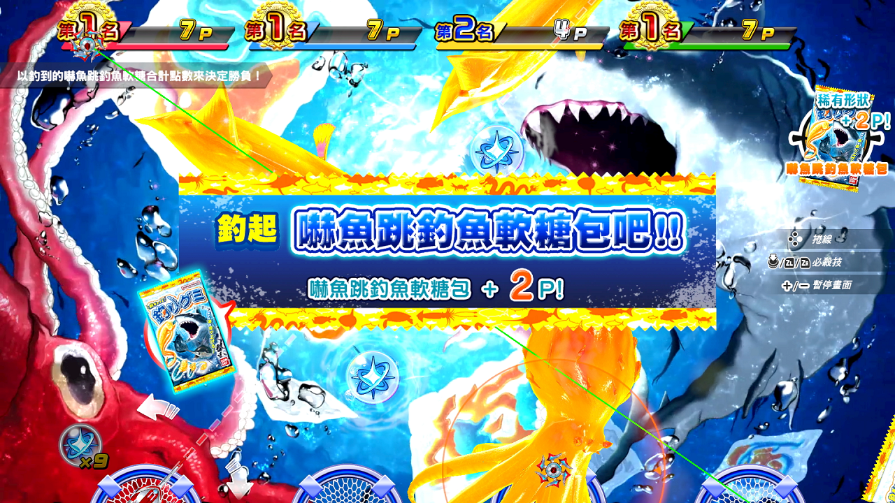 最多可進行4人對戰的「王牌釣手派對」中,現已追加「嚇魚跳釣魚軟糖釣魚大會」。