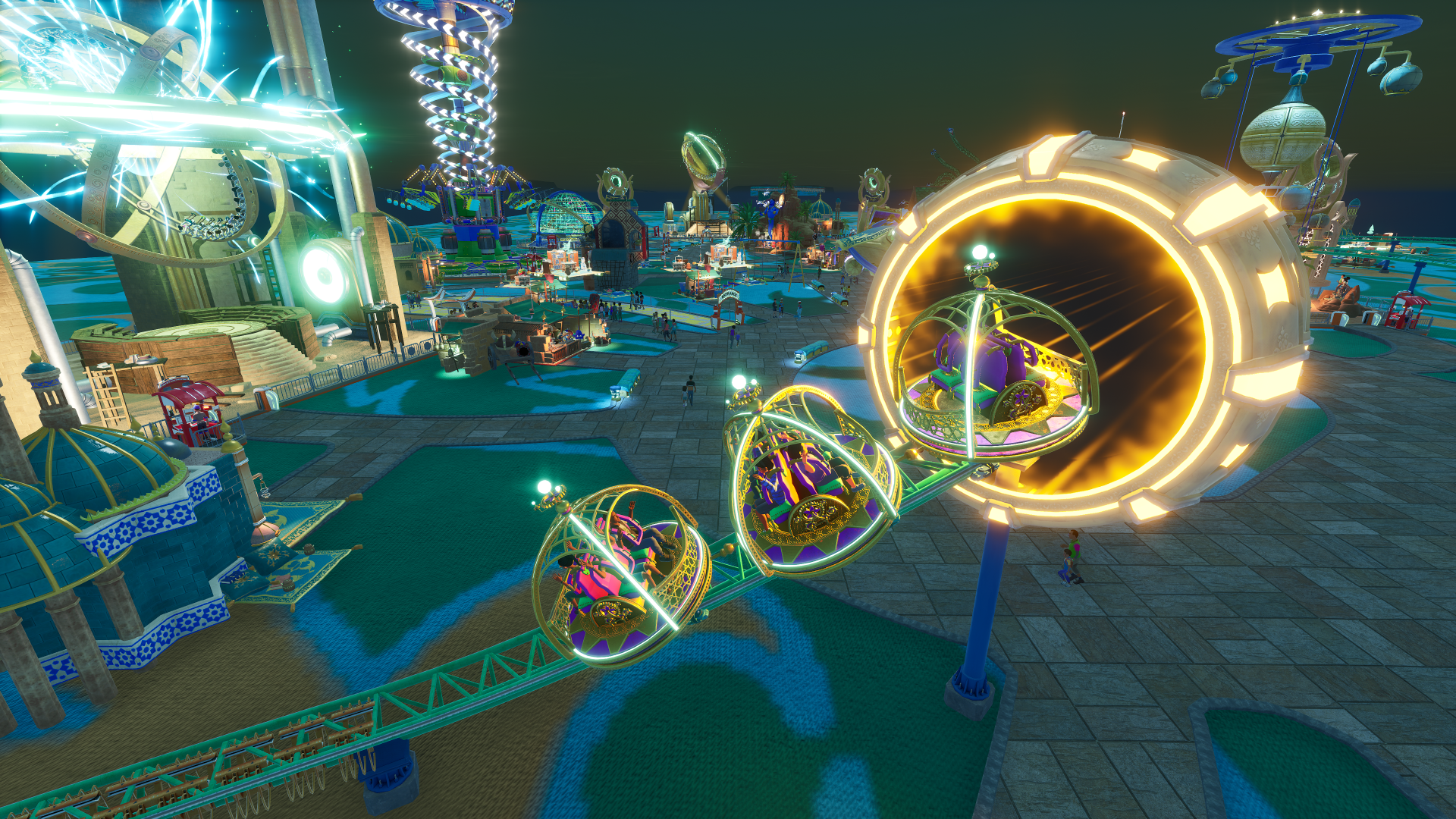 回應玩家社群熱情的要求,現在玩家將可以藉由全新類型的「旋轉雲霄飛車」盡情遨遊在張狂的沙塵暴中,更可使用超過230種的主題造景物件,帶領遊客們穿梭於阿拉伯充滿魔法的空中,讓他們帶走一個畢生難忘的故事。