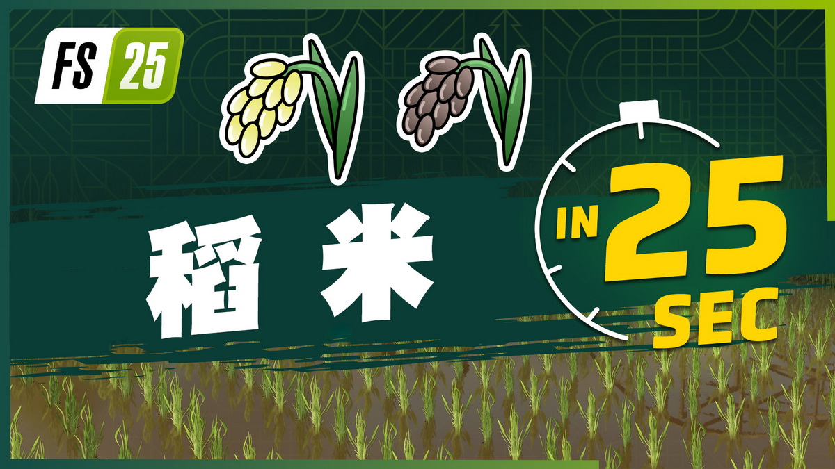 《模擬農場 25》裡可栽種的作物種類如同遊戲名稱所述,共有25種。本次公開的預告影片介紹了其中之一的「稻米」,這也是本次新增的亞洲地圖的代表性作物。玩家可栽種長粒米與短粒米2種稻米,米的幼苗則可在店裡購買,或是在自家的溫室生產。玩家可以用自己喜愛的栽種方式,享受真正的種稻樂趣。