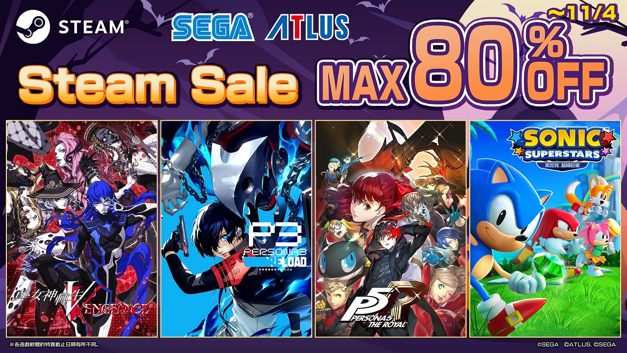 ATLUS的《真.女神轉生Ⅴ Vengeance》和《女神異聞錄5 皇家版》將以Halloween Sale優惠價於本次特賣中登場。除此之外,《索尼克 超級巨星》以及《魔法氣泡™ 特趣思™ 俄羅斯方塊™ 2》等各式各樣人氣作品亦為本次促銷商品。特賣截至2024年11月4日(一)為止,還請不要錯過本次機會。