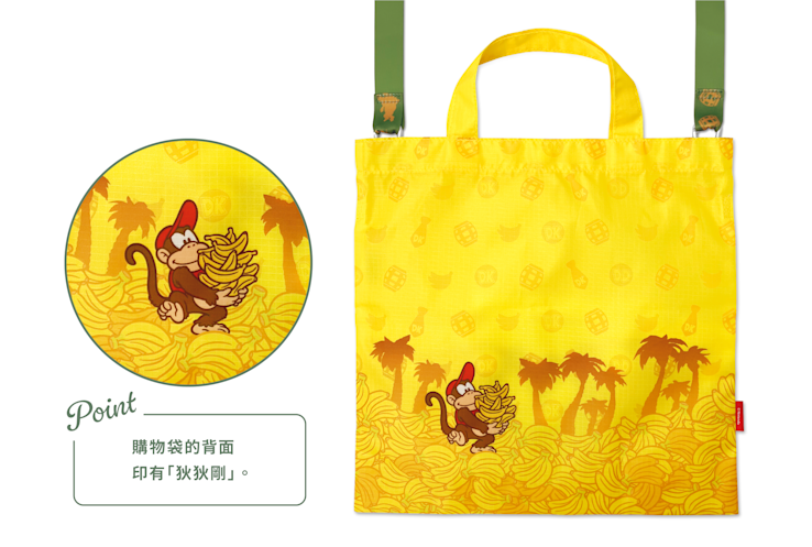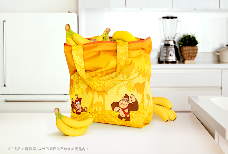 「咚奇剛」的禮品 x 購物袋亦已登場。袋上印有被大量香蕉圍繞,心情愉快的咚奇剛跟狄狄剛。不管是用來送禮還是用於派對場景,都絕對會使氣氛變得高漲。