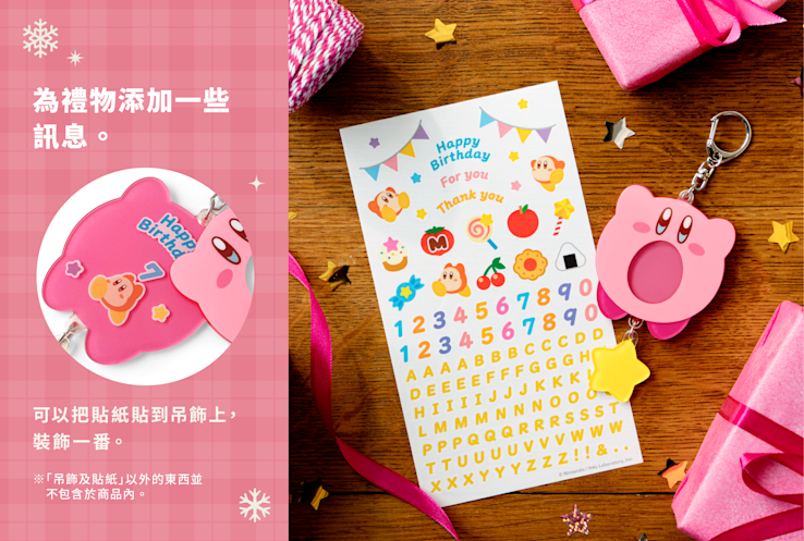 此外,還有「星之卡比」的裝飾吊飾。可以使用貼紙來裝飾吊飾,當作生日賀卡或是名牌使用。推薦大家貼上瓦豆魯迪或是食物的貼紙。