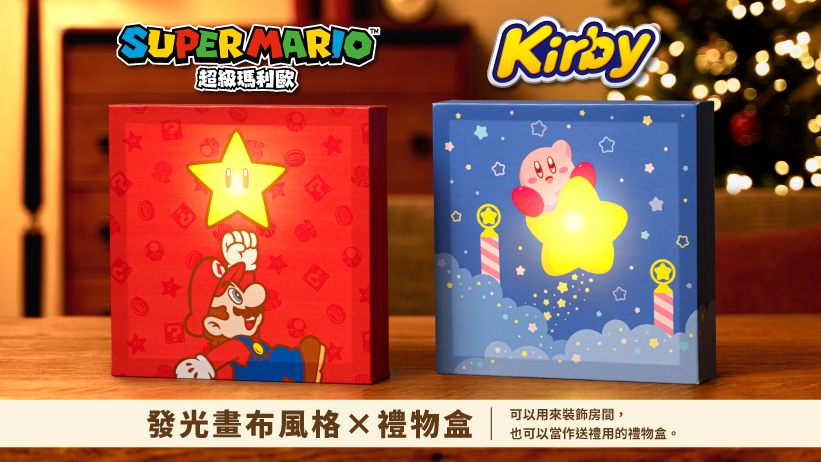 這個季節,街道上充滿閃亮華麗的燈飾與布置。應該有不少人開始準備禮物跟籌備派對吧?我們將介紹多款適合用於包裝禮物與派對布置的商品。當中包括可以當作室內飾品,同時也可以作為禮物盒送人的「發光畫布風格×禮物盒」,還有適合布置派對場景的「超級瑪利歐」、「星之卡比」及「咚奇剛」的新商品(共12種)即將登場。