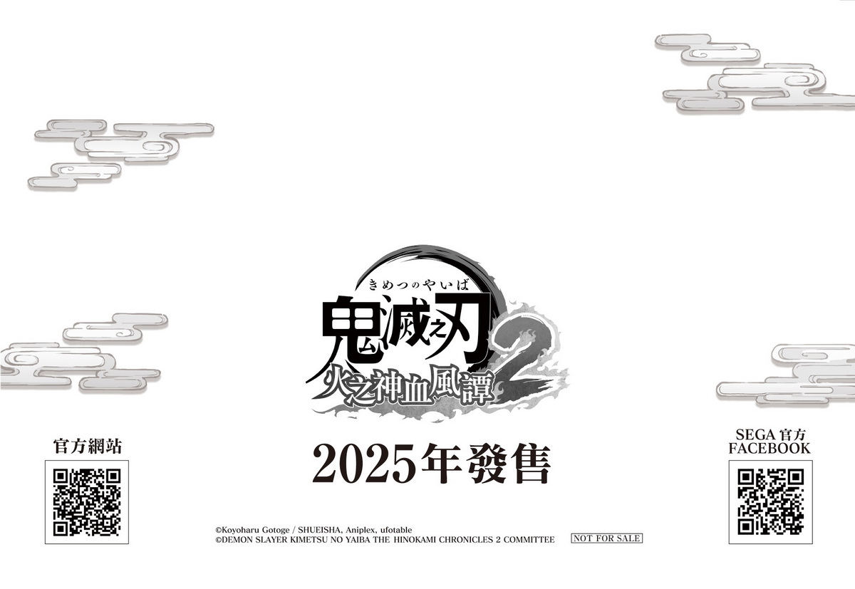 世雅股份有限公司宣佈,《鬼滅之刃火之神血風譚2》將於2025年1月23日至1月26日參與在台北南港展覽館舉辦的「2025 台北國際電玩展」展出!在本次展出期間,玩家可以在任天堂攤位(攤位號碼:M820)親身體驗這款備受期待的作品。此外,為了回饋廣大玩家的支持,所有前來攤位參觀的玩家們都有機會獲得《鬼滅之刃 火之神血風譚2》的精美贈品。敬請期待與SEGA一同迎接2025台北國際電玩展的精彩時刻!