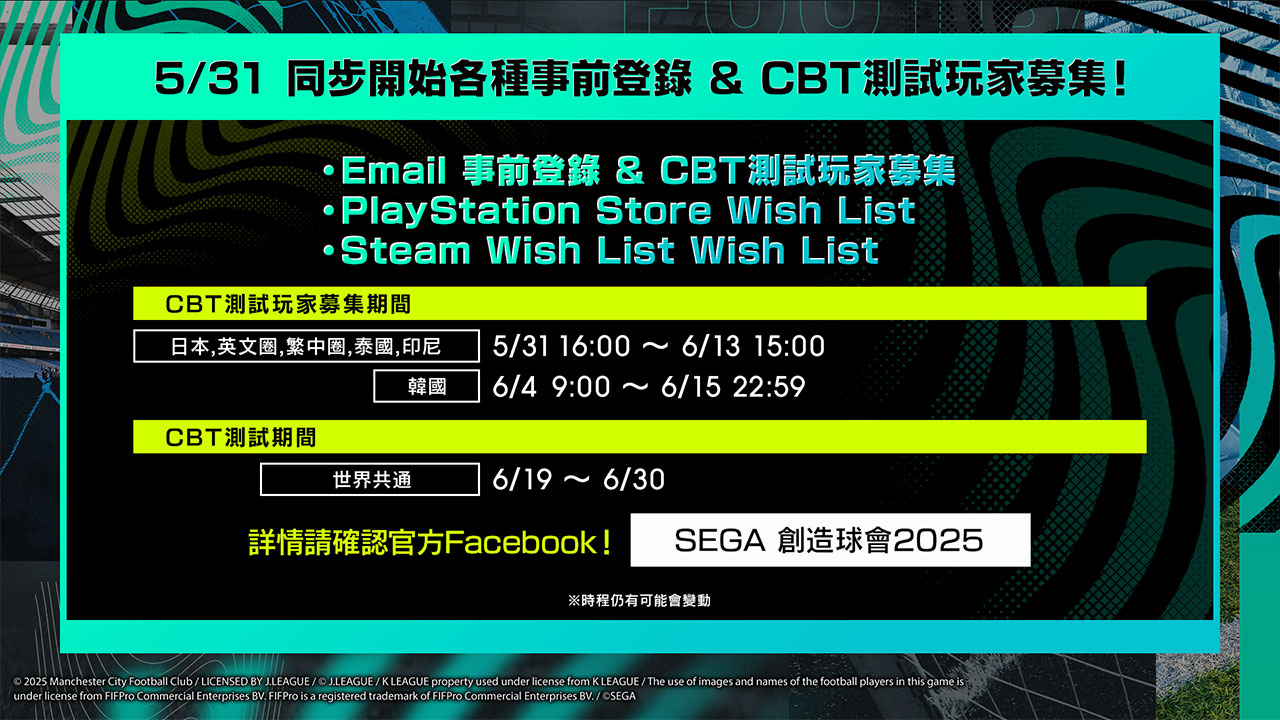 《SEGA 新創造球會2025》關於封閉測試詳情請由此確認