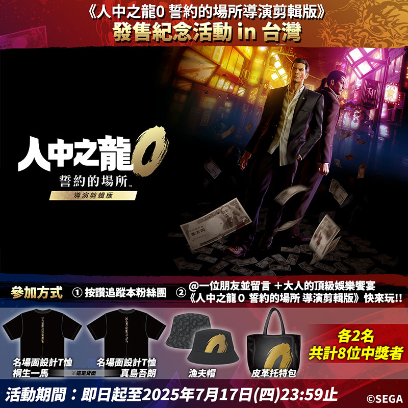 世雅股份有限公司宣布,Nintendo Switch™ 2專用動作冒險遊戲《人中之龍0 誓約的場所 導演剪輯版》已在今日(2025年7月10日,週四)發售。