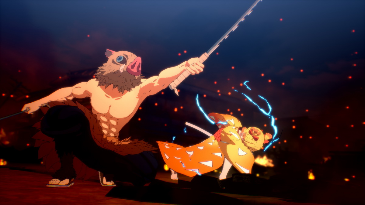《鬼滅之刃 火之神血風譚》於2021年10月14日發售,是一部以2019年4月開始播放的動畫「鬼滅之刃」為基礎製作的對戰動作遊戲。本作由Aniplex擔當製作和日本國內銷售商(※1),CyberConnect2 Co., Ltd.進行開發,世雅股份有限公司擔任日本國外銷售商。本作透過免費更新追加可使用角色,並持續販售了5次付費下載內容「遊郭篇」的角色包,作為「鬼滅之刃」首部家用遊戲備受全球玩家好評,全世界的累積出貨量已突破(※2)400萬部。敬請期待《鬼滅之刃 火之神血風譚2》今後的動向。