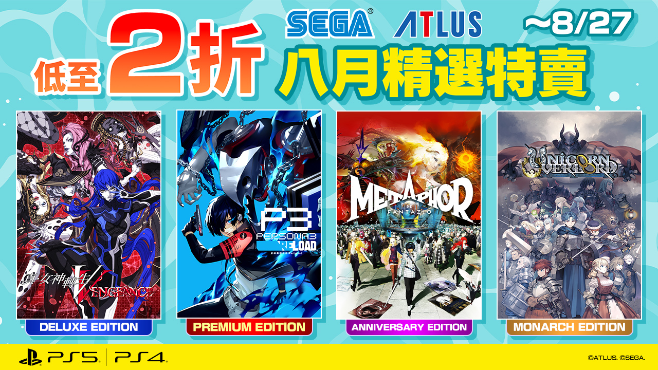 世雅股份有限公司現正舉辦「SEGA八月精選特賣」,部份在PlayStation™Store中販售的PlayStation®5/PlayStation®4遊戲作品限時特價中。
