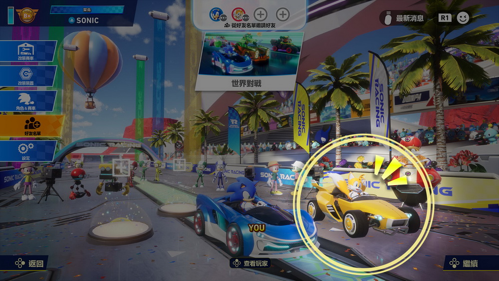 《索尼克賽車 交叉世界》透過跨平台遊玩功能,還能與其他主機玩家遊玩。