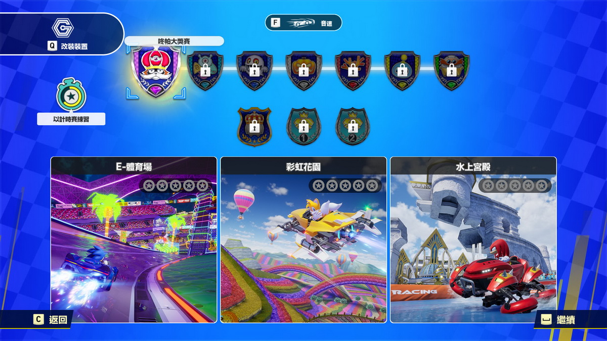・賽道數量:8(3條主要賽道、5個交叉世界)
