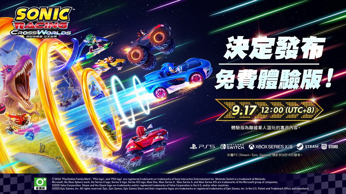 《索尼克賽車 交叉世界》決定於9月17日(三)發布可繼承遊戲紀錄的體驗版!