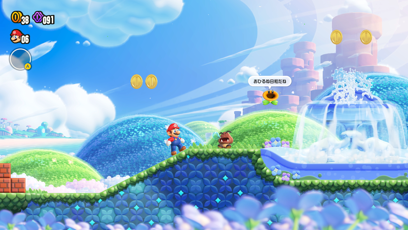 《超級瑪利歐兄弟 驚奇》中,有一個會跟瑪利歐等人搭話,名叫「閒聊花花」的角色。