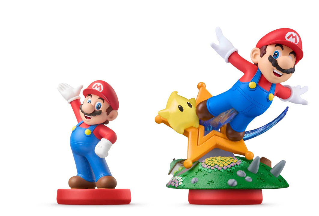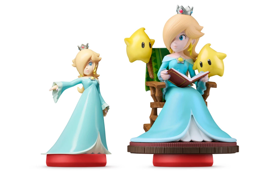 翱翔宇宙的立體透視模型風瑪利歐,以及念繪本給奇可聽的羅潔塔,將以大於一般amiibo的尺寸登場。