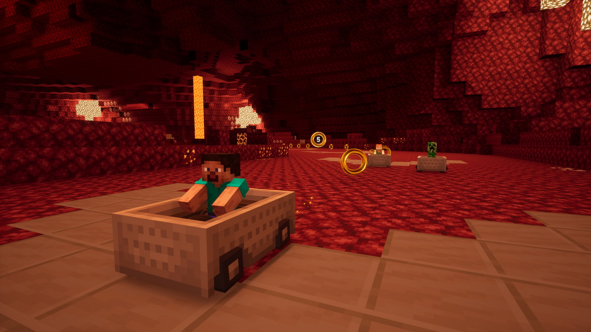 史提夫、愛莉克斯及苦力怕將以賽車手之姿登場。也將推出以「Minecraft」為原型的賽道「MINECRAFT WORLD」以及賽車「minecart」。除此之外,點唱機新增「Minecraft」歌曲,可設定為遊戲內的BGM聆聽享受。
